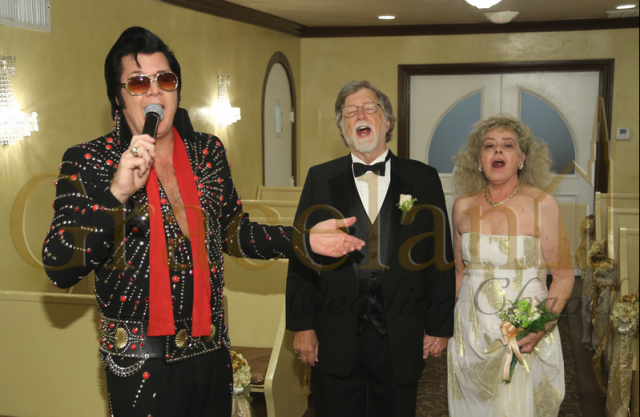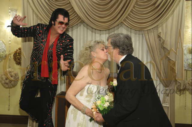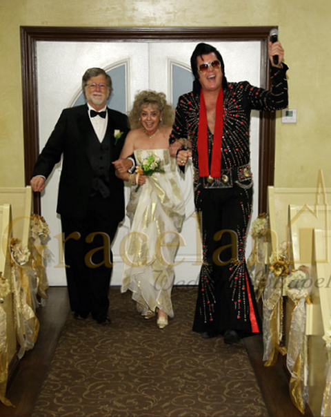 If you're "really" getting married, they provide a minister to perform the ceremony with Elvis providing entertainment. But if you're renewing your vows, you can ask that Elvis perform the ceremony. Our choice? Are you kidding me?
