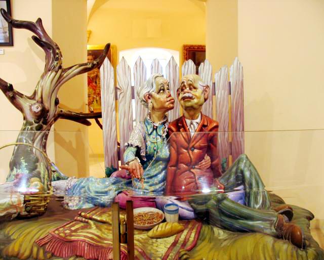 350 artists from all around the country create 20' - 30' high papier-mache and wood sculptures. They can be on just about any subject but often represent things the artist is upset by. Inside each of these sculptures is a smaller (about 1/4 scale} model of the sculpture itself.