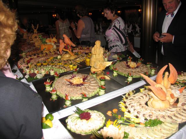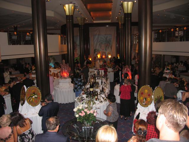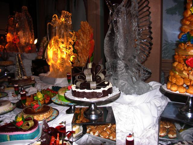 At 11:45p we were again admitted to the Grand Dining Room for an elaborate dessert display. We took pictures, but were too stuffed to eat anything: