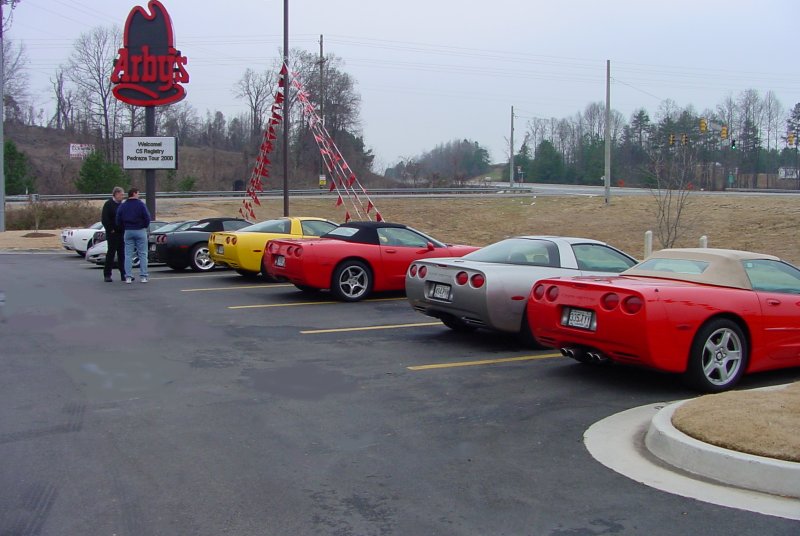 Eight C5s met at the Arby's on GA 400 near Dawsonville, GA at 9am this morning. It was a grey day (sorta like the background of this page) and chilly. Here we are: