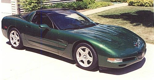 Over the next 15 years I had a few near misses, one on a "63" split window. Then, 2 years ago the timing was finally right (read I finally had the cash) and Karen, wise woman that she is, suggested that I buy a Corvette. Well, that was all I needed to hear and I started looking around for a nice project car, something in an early C3. Karen then suggested that I should get something that we could enjoy now instead of 5 years from now when I got the project finished (she is wise beyond her years). So, I started looking around at C5's. I drove by the dealership near our home just to see what they might have and there was a Fairway Green 97. I fell in love with it the first time I saw it. I got Karen's approval and we brought it home last June. I know that green isn't for everyone but we sure like it and it always gets compliments when I drive it.