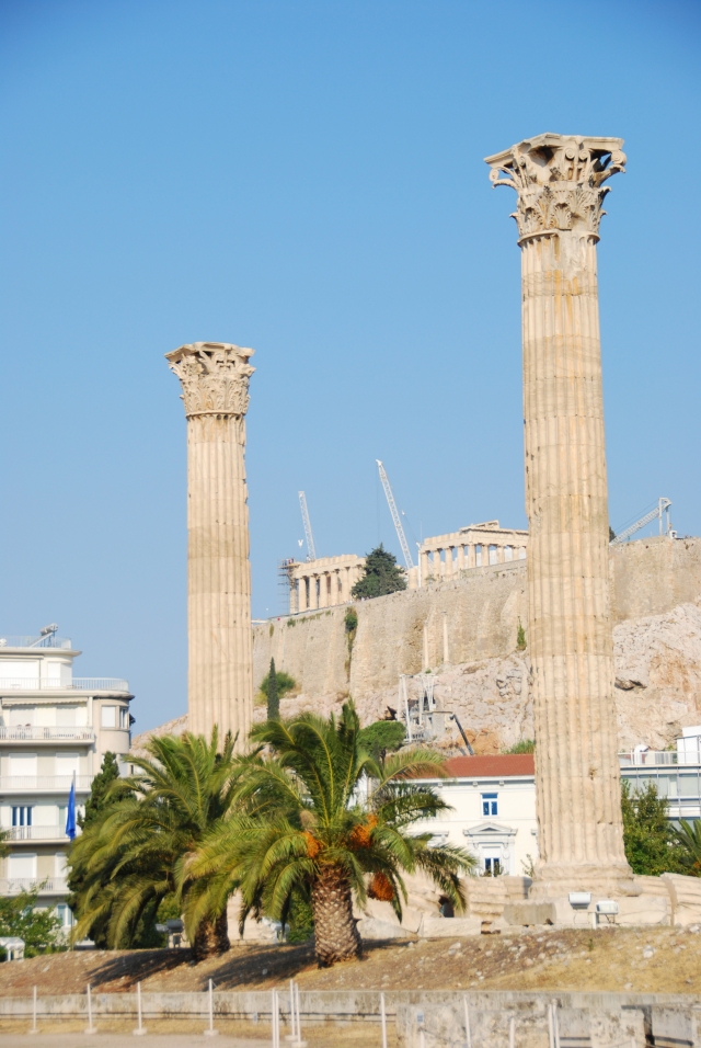 Below is the money shot. on the left is the Parthenon, in the center are columns at the Temple of Olympian Zeus, and on the right is Hadrian's Arch.