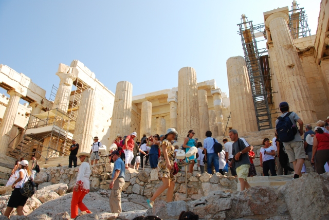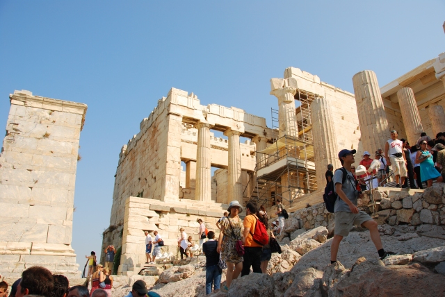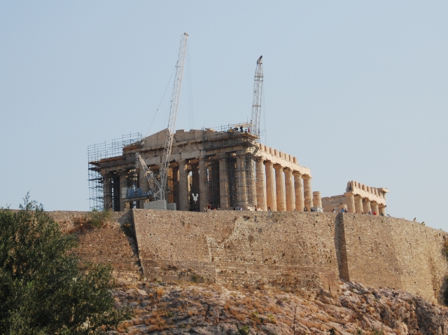 Back in the bus for the ride up to The Acropolis where the restoration of the Parthenon continues. I walked most of the way up before my legs gave out so Gael went the rest of the way up without me. She tells me that seeing the Parthenon is much like seeing Tiananmen Square in China; until you see it in person, you have no concept of the scope or size. My photographs represent what I could see from near the top of The Acropolis: