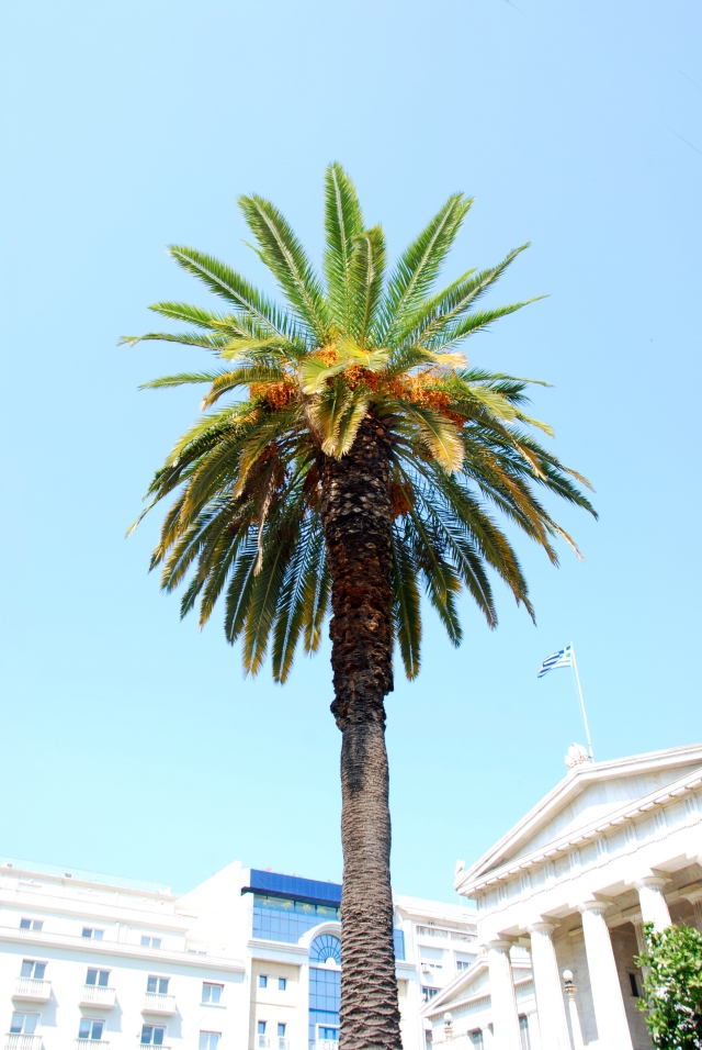 The palm trees throughout Athens, we're told, were all imported from Africa.