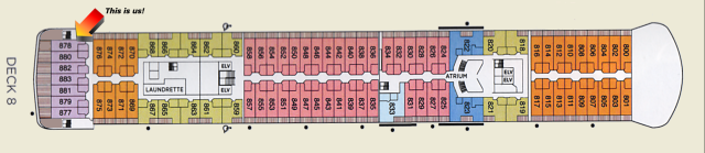 As you may recall our suite is the last one aft on the port side of Deck 8: