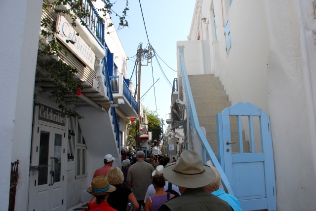 Her English and the size of the crowd made it difficult to follow everything she was saying, but we got it (mostly). Then we walked through the town of Mykonos which is a blend of historical references and shopping.