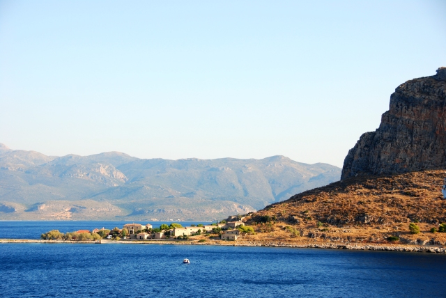 Monemvasia is really a peninsula joined to the Greek mainland by a short causeway. Many of the medieval buildings have been restored and converted to hotels.