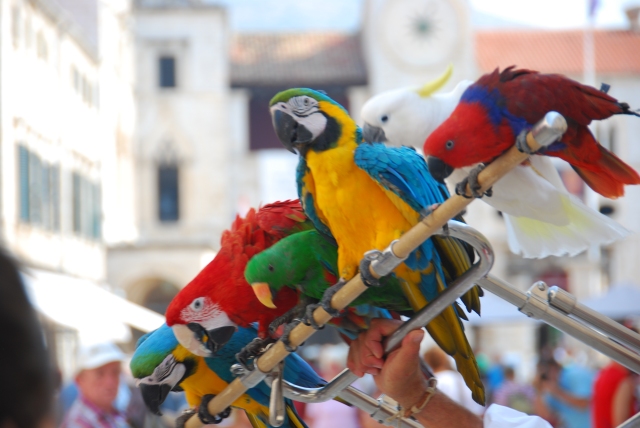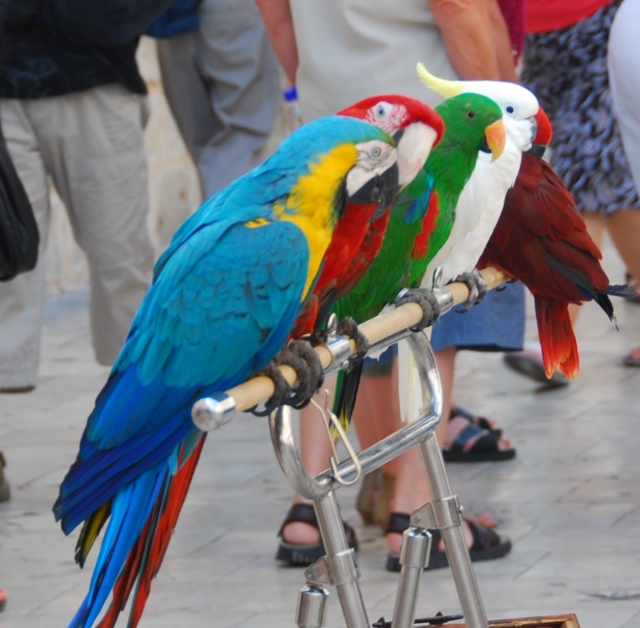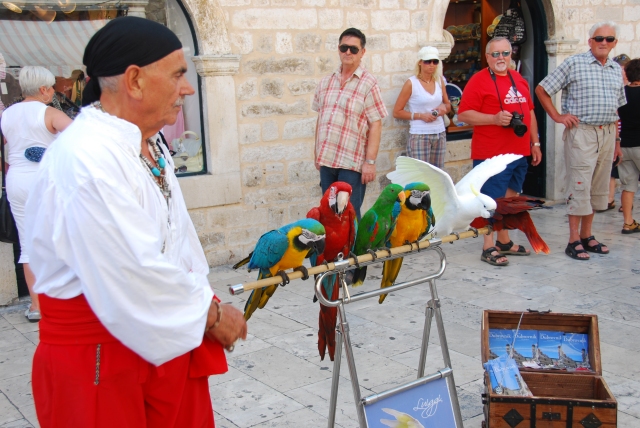 This man was showing off some beautiful birds with which (for a fee) one could pose: