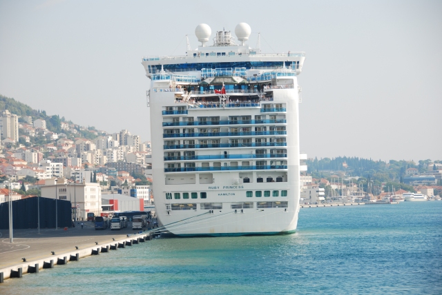 Here's the butt-end of the 4,000 passenger Ruby Princess docked behind us: