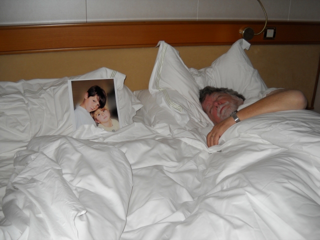 As soon as we were out to sea, we retired to our suite so I could write this. I really intended to write, too, but I lay down (just for minute) and soon it was 6pm. Could have been the two beers at lunch, I guess. At least I had company: