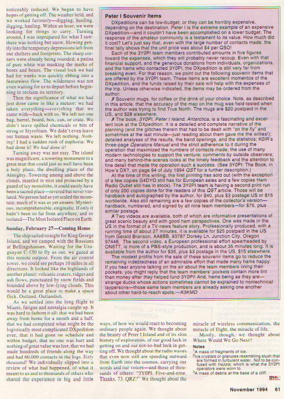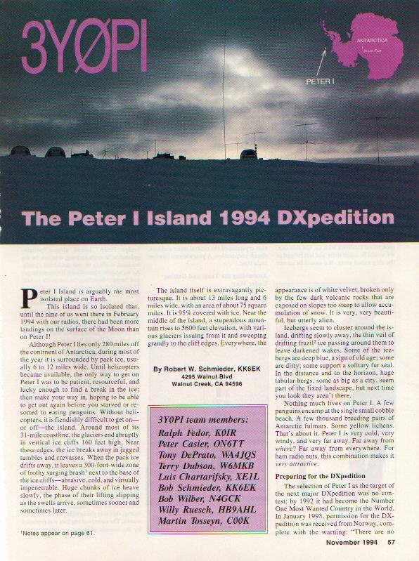 QST ARTICLE: PETER I EXPEDITION 1994